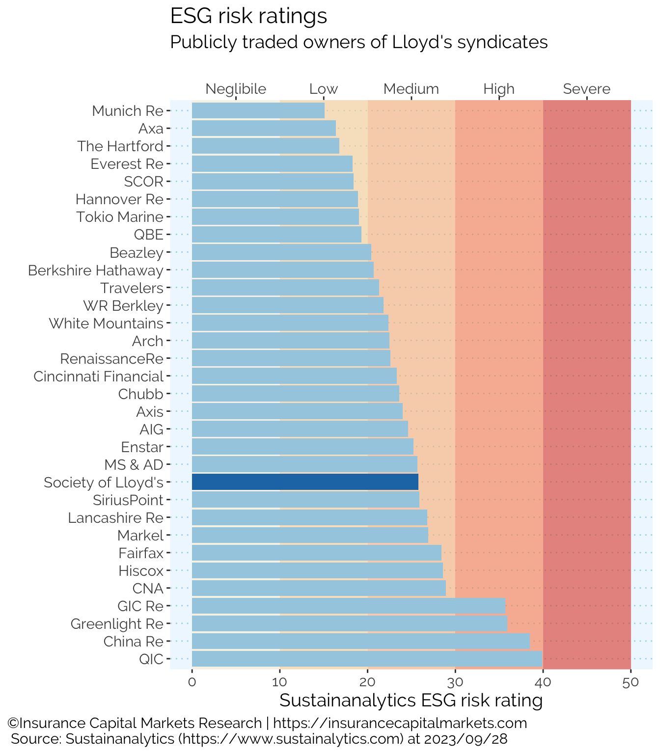 However, most of this is focused on inwards business placed at Lloyd’s, and to a lesser extent the day-to-day operations of the managing agents themselves. To date, little emphasis has been placed on the ESG rating of the owners of Lloyd’s managing agents, most of which are publicly listed and have their own publicly available ESG rating.