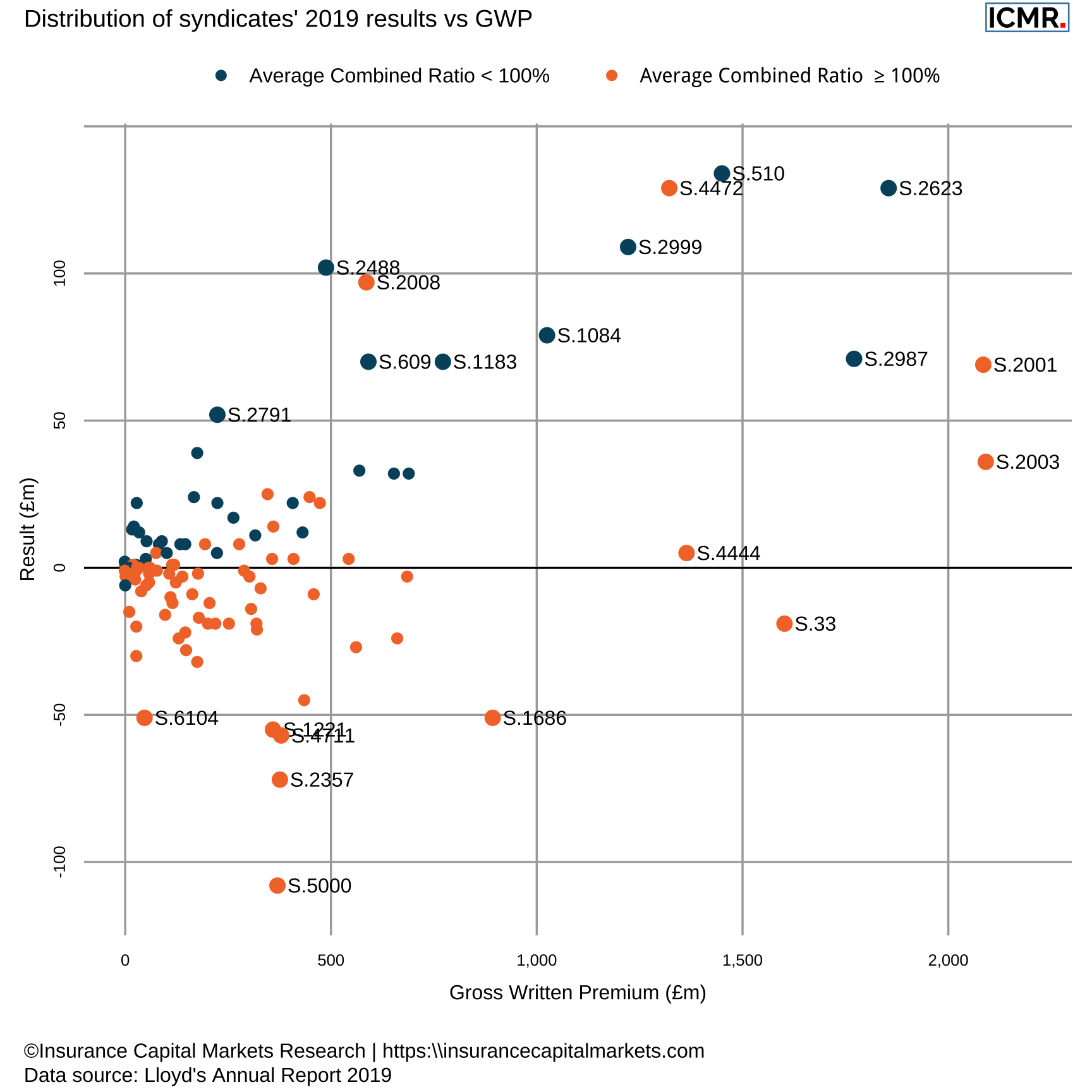 Plotting the syndicates’ results against their GWP gives us the opportunity to understand if size did matter.