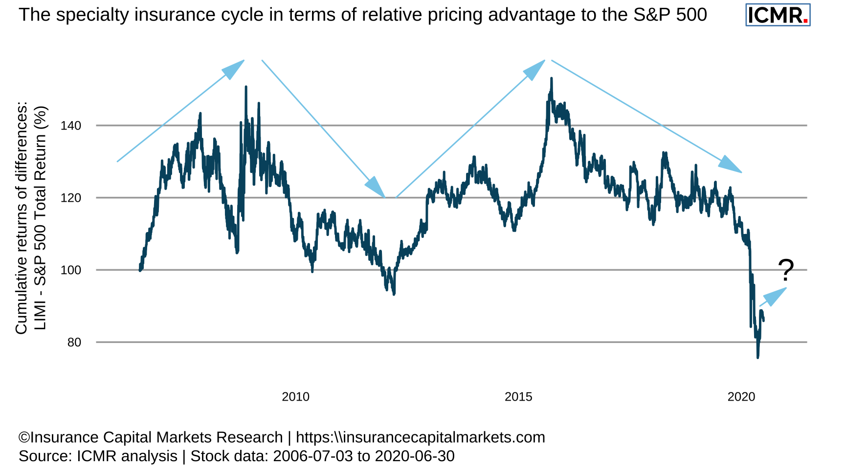 Research by ICMR shows that comparing stock performance of specialty re/insurance companies with the S&P 500 can provide new insight into the state of the insurance cycle