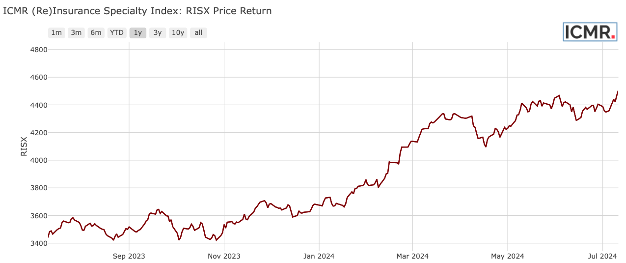 ©Insurance Capital Markets Research. Index administrator and calculator: Morningstar Indexes Ltd. Inception date: 2006-06-16, base value: 1000. All performance shown prior to 2021-03-22 was retrospectively calculated by application of the Index Methodology. Data as at 2024-07-11.